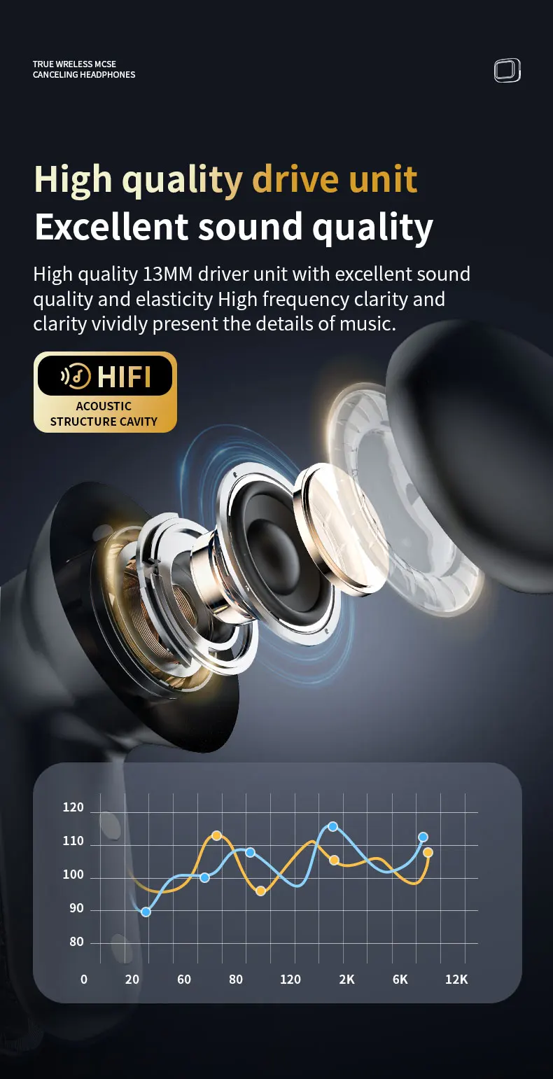 🎧 Hi-Fi STEREO SOUND & ENC NOICE CANCELLING - The active noise cancelling earbuds with microphone powered by 13mm large-size speakers, focusing on obtaining clear midrange and balanced bass and treble performance to vividly reproduce your music. Touch screen earbuds using CVC8.0 technology noise noice cancelling technology, wireless earphones with dual HD microphone. Quiet music and clear calls even in noisy environments