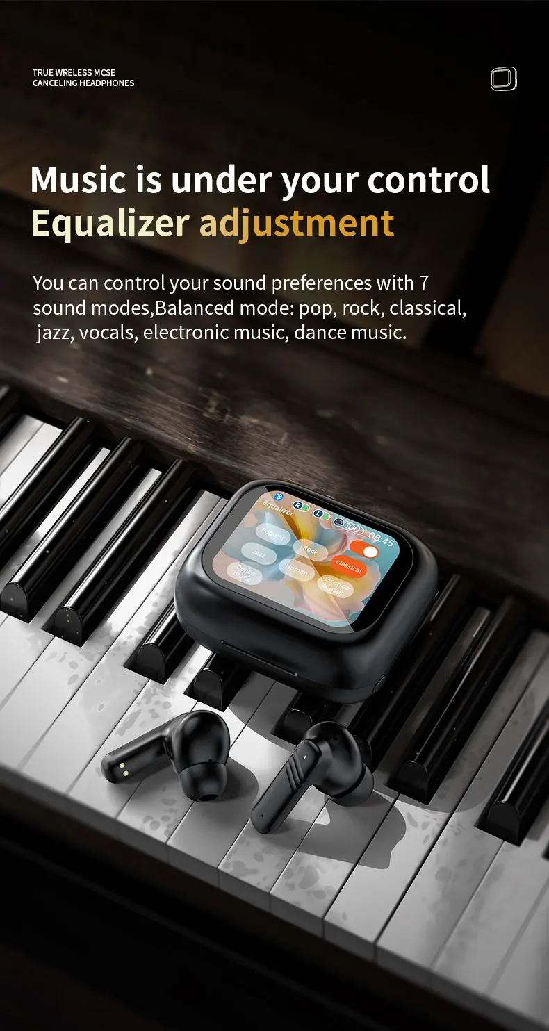 🎧 SMART CASE FOR SEAMLESS EXPERIENCE - Control earbuds settings, control volume settings, EQ modes and battery levels for both ear buds and charging case, as well as display the time and set alarms from the charging case's screen without taking out your phone. With the unique Smart Charging Case, enjoy a truly smart experience without having to use your phone.