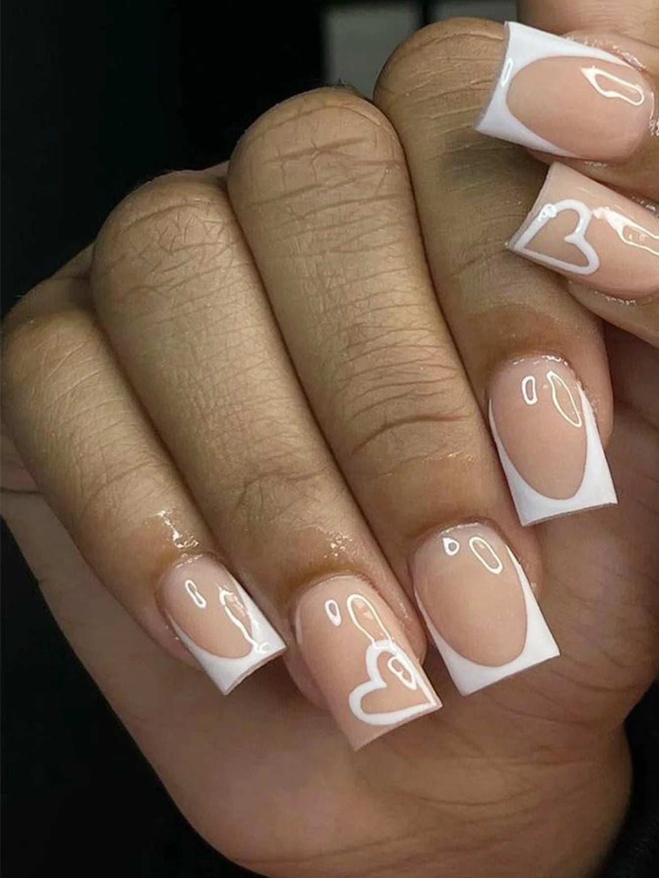 24pcs press on nails short Square Love Design fake press on nails black french tip press on nails cute nail press on acyrlic na