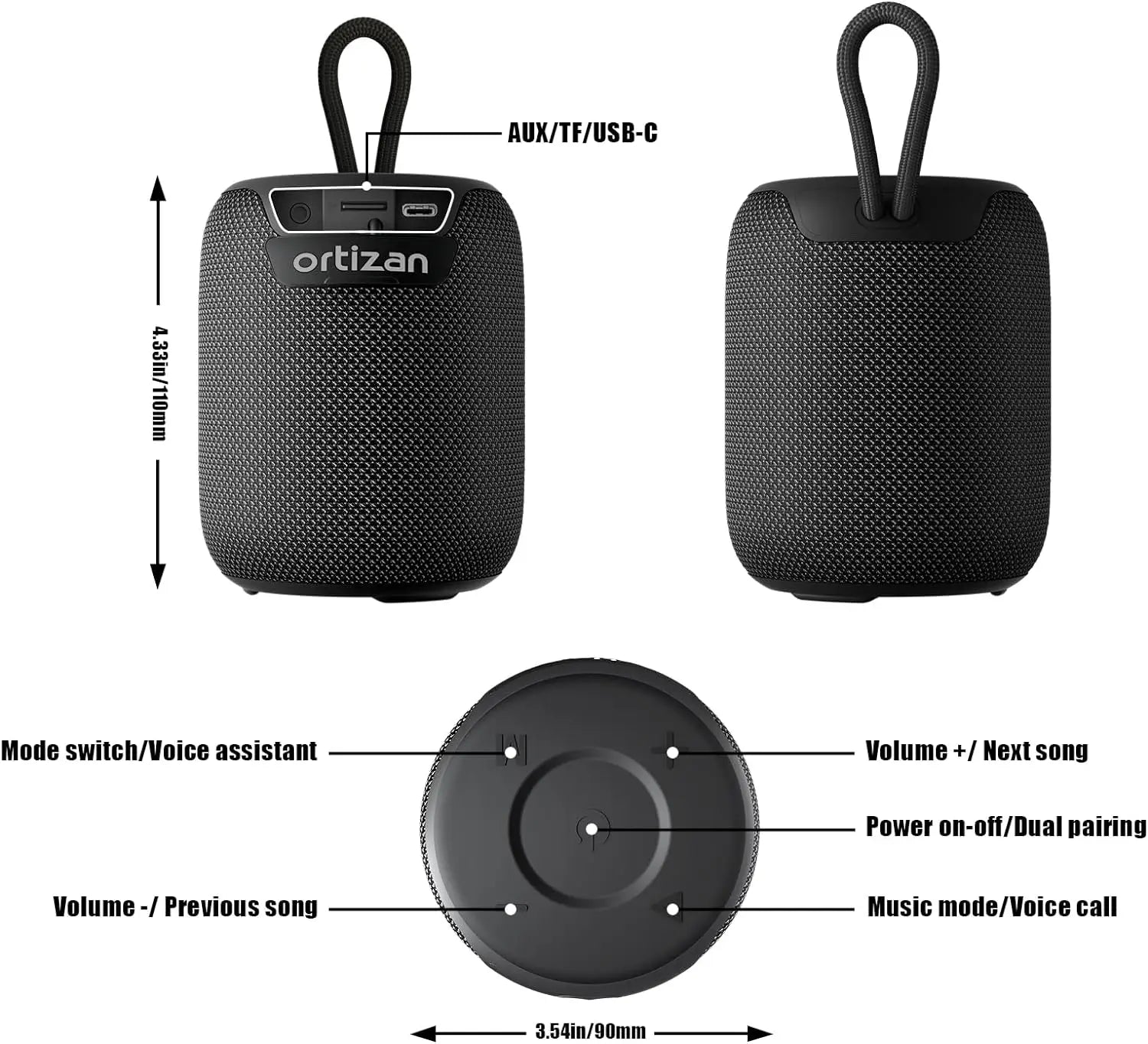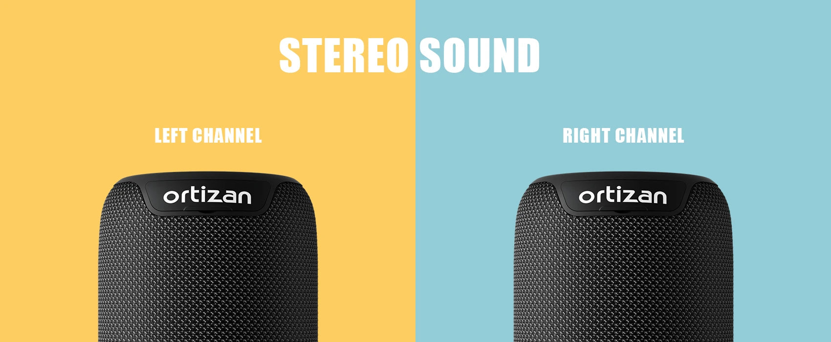 Take Ortizan speakers for adventure. With an IPX7 waterproof case, the Bluetooth speaker can provide perfect protection in a fully enclosed state to prevent rain, dust, and snow from entering. therefore is perfect for use in a shower room, by the pool or beach, and even in the rain.