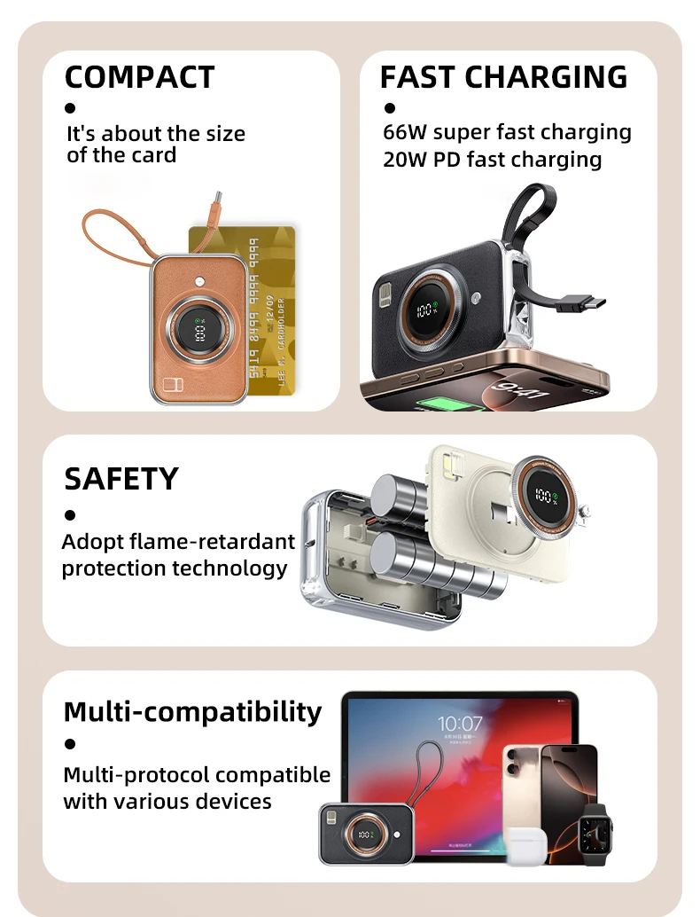 Power Bank 10000mAh Large Capacity Power Bank With 2 Cables PD Fast Charging Powerbank Rechargeable Batteries Portable Battery