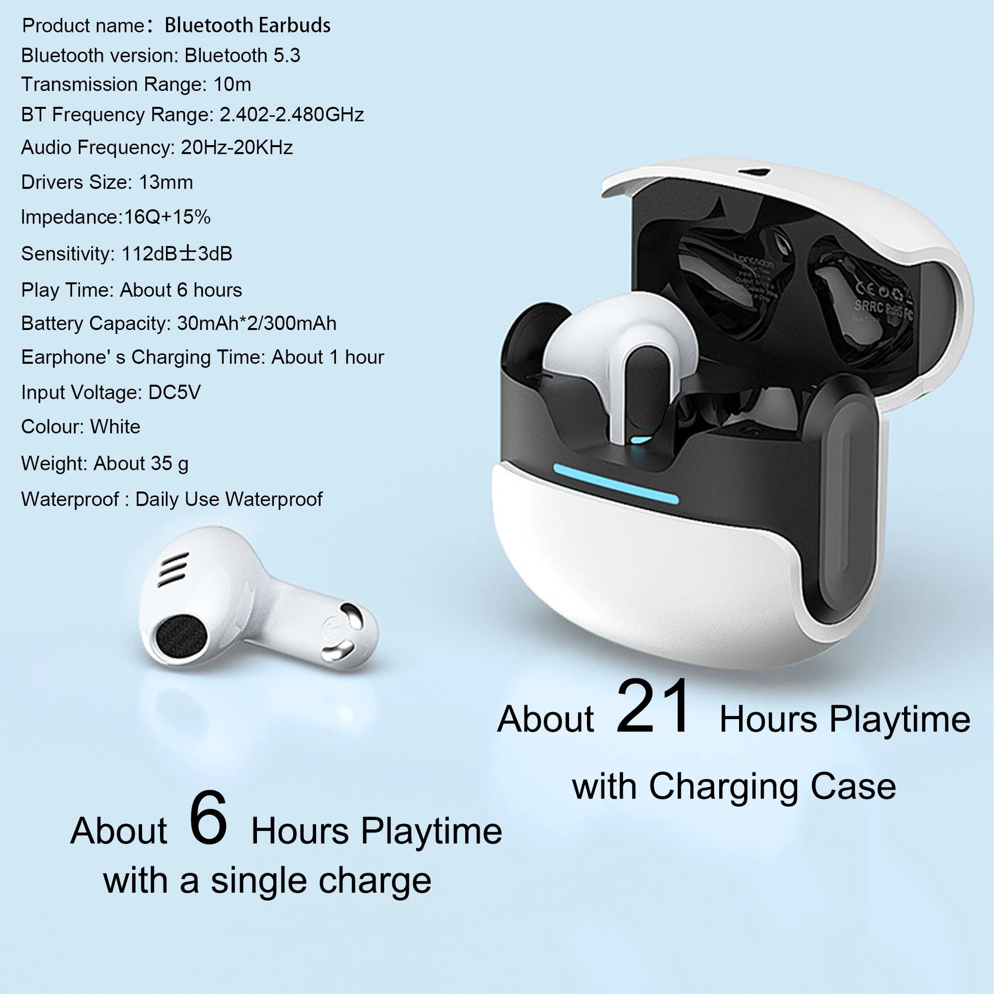 Extended Battery Life: Enjoy up to 6 hours of continuous usage on a single charge, and with the included charging case, you can get a total battery life of up to 30 hours. Keep the music playing or immerse yourself in gaming sessions without worrying about running out of power.